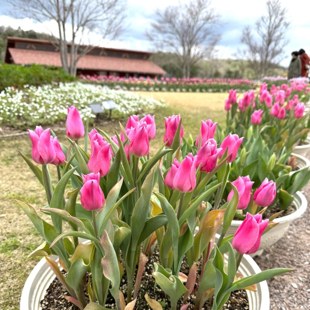 園内での飲食が可能なので、お弁当を作って行きました。芝生広場で食べる予定でしたが この日は寒かったため施設内の休憩所のベンチで花を眺めながら。レストランや売店もあります。
