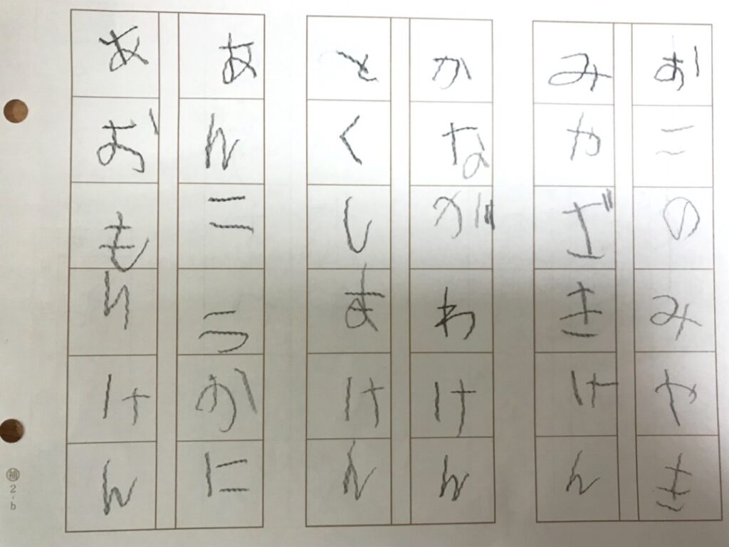 公文に入塾してから半年間、延々ズンズンのみ。来る日も来る日もズンズンばかりやっていたおかげで、次のステップひらがなに入るころにはスムーズに滑らかな文字が書けるようになっていました。