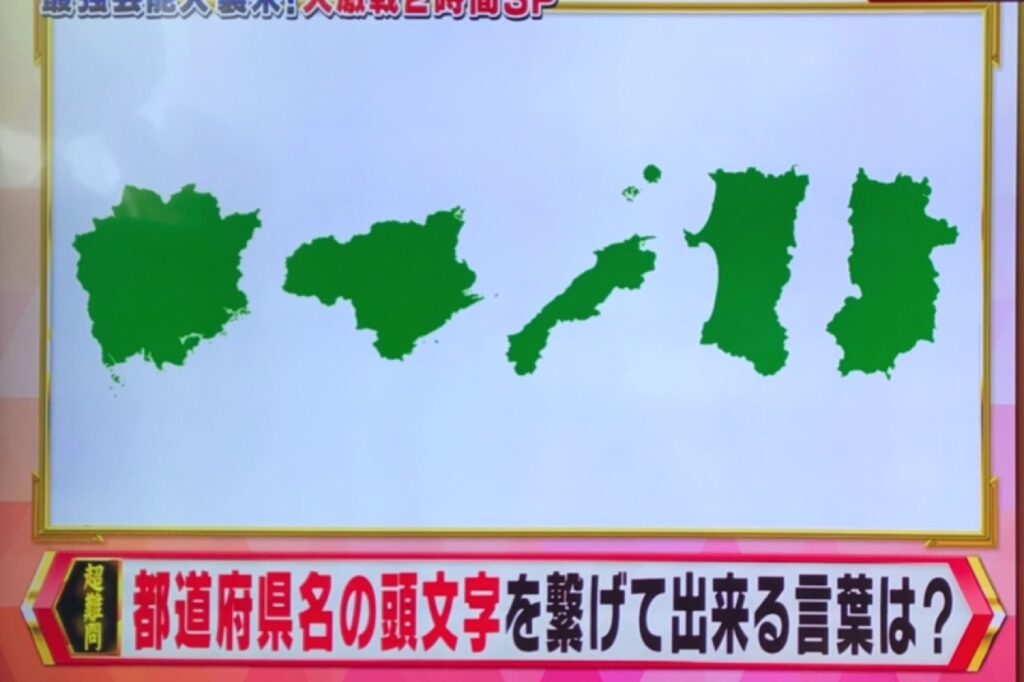 唐突に続けて質問され「???」と思いながら家事を中断して某クイズ番組を観ていたロープの元へ行くと、画面に映っていた問題が「都道府県名の頭文字を繋げて出来る言葉は?」というもの。